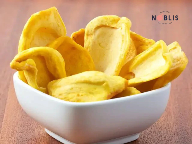 Graças ao processo de desidratação a baixa temperatura, a jaca chips da Nóblis mantém qualidade e sabor por até 2 anos, desde que armazenada corretamente.